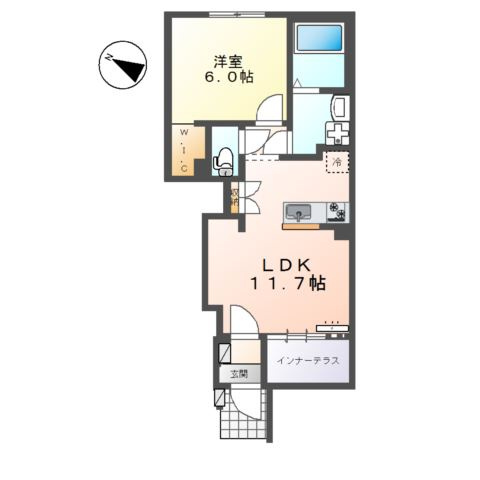 LDK 11.7帖 1室/洋室 6.0帖 1室 - 向き