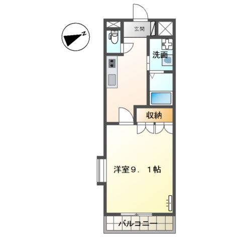 洋室 9.1帖 1室 - 向き