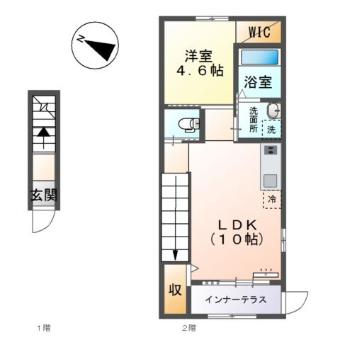 洋室 4.6帖 1室/LDK 9.7帖 1室 - 向き